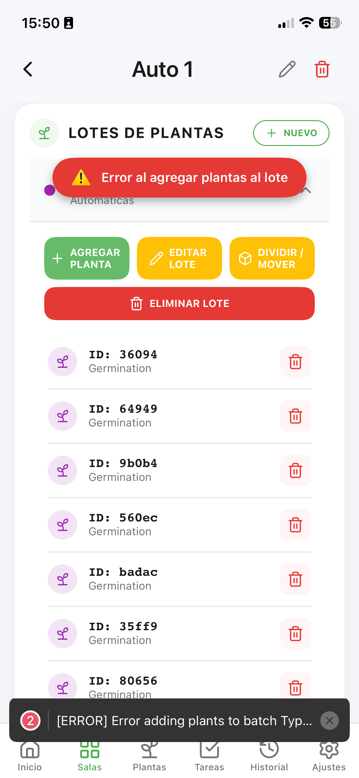 - División Inteligente: Separa una cantidad específica de plantas de un lote si necesitan cuidados especiales.