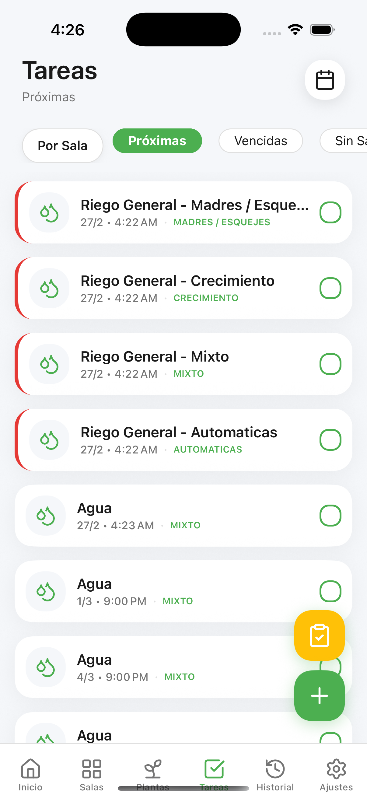 - Manejo en Masa: Aplica una tarea a toda una sala o lote con un solo registro (Bulk Actions).